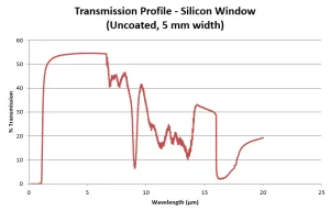 ゲルマニウムに加えて、シリコン (Si) も IR ウィンドウに広く使用されています。シリコンは、NIR (1μm) から約 6μm で使用できる最も硬い鉱物および光学材料の 1 つです。光学品質シリコンは通常、透過波長帯内の吸収帯を防ぐためにドープされています (5 〜 40 オーム-cm)。シリコンはゲルマニウムよりも屈折率が低く、密度が低いため、軽量な光学設計が可能です。