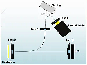 測定装置全体と製造されたファイバー プローブを図 3 に示します。検出器は、NIST トレーサビリティ テスト ターゲットを使用して較正されています。スペクトル範囲は、別の LED を選択することで調整できます。スペクトル解像度は、異なるステッピング モーターを選択することでカスタマイズできます。