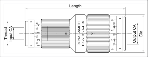 種類が多岐にわたるBXZシリーズ・手動ズーム式ビームエクスパンダーは、UVからIRまでの波長域をカバーし、低電力、高出力、大口径、 可変ズームを実現したビームエクスパンダーです。