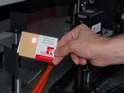 黒色印刷した硬化紙は、CO2レーザやNd:YAGレーザ、532nmグリーン光、355nmUV光、ファイバー・レーザなどのレーザビーム形状や集光スポットサイズ、マーキングの線幅、マーキングの領域サイズをチェックするレーザ焼き付け媒体として使います。スポットサイズやマーキングの線幅を測定するときは、拡大器を一緒に使うことをおすすめします。