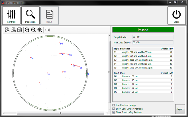 OptiNspec(完全自動平面光学表面品質検査装置)は、光学素子の表面品質(スクラッチ/ディグ)検査装置です。MIL-PRF-13830BおよびISO 10110-7:2017(可視性仕様)標準に基づいて、客観的な評価結果と検査レポートを提供します。 この機械には、再現可能な評価を得るために工場で調整された評価基準が付属しています。 人間ベースの検査間の主観的な結果とサプライヤー間の矛盾する結果を排除します。