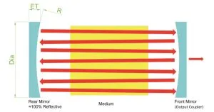 CO2 レーザキャビティ光学系は、リアミラーとフロントミラー (出力カプラまたは部分反射器とも呼ばれます) で構成されています。非常に高い反射率 (>99.7%) を持つリアミラー (通常は ZnSe) は、レーザ共振器の重要な光学部品です。出力カプラは、レーザ共振器からレーザビームの一部を抽出する部分反射ミラーです。コンポーネント内の多重反射による干渉を防ぐために、わずかなくさびが必要になることがよくあります。高品質の CO2 レーザミラーは、損失を最小限に抑え、効率的なビーム伝送を保証します。