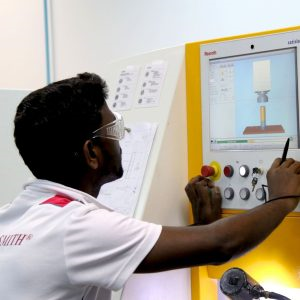 Wavelength Optp Electronic社のスタッフがサティスロマシンを操作