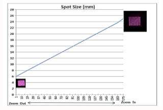 システム内には多くのモジュールがあります。QBH はレーザ光源の入力に接続します。コリメート モジュールはレンズを通してビームを平行光に変換します。ズーム成形モジュールはモーターを通してスポットのサイズを調整します。最後に、フォーカス モジュールはレーザ ビームを焦点に集束させて高エネルギー強度を実現します。集束スポットのサイズは 6mm から 25mm まで変化します (図 2 を参照)。
