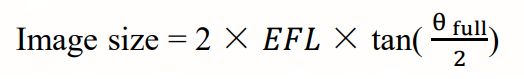 最初に考慮すべきことは、希望する画像サイズです。 ビーム整形 DOE は通常、集束光学系を備えたセットアップで使用され、画像サイズは集束光学系の有効焦点距離 (EFL) と DOE の全角の両方によって決まります。