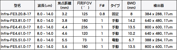 ・フォーカスタイプ: 手動または固定 ・動作温度:±40℃〜+60℃ ・保存温度:±20℃〜+80℃