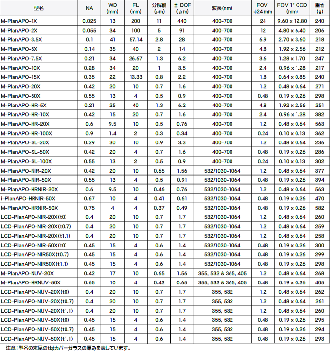 アポクロマート顕微鏡対物レンズは、355nm 〜 1064nm のスペクトル領域で機能するいくつかの倍率で利用できる無限の光学システムです。