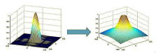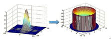レーザ光学系では、回折光学素子 (DOE:diffractive optical elements) はコリメートされたガウス ビームを目的の出力パターンに変換するように設計されています。