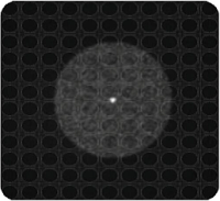 図に示すように、単一モードレーザからの鮮明な境界を有する円形スポットが生成されます。コヒーレンスのために中心輝度は比較的強い。