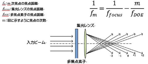 単一の入射ビームで、この多焦点素子は、異なる距離からの伝搬方向で異なる焦点を形成することができます。