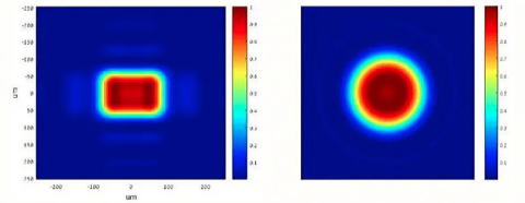 トップハット プロファイルは、処理領域と未処理領域の間に明確な境界を生成する鋭い遷移領域によって識別されます。 出力プロファイルは長方形または円形のいずれかになります