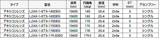 標準アキシコン レンズ ? 180°-2α に等しいアキシコン コーン角