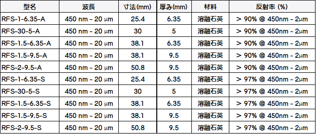 ・保護されたアルミニウム: Ravg > 90 % @ 400 nm - 2 μm