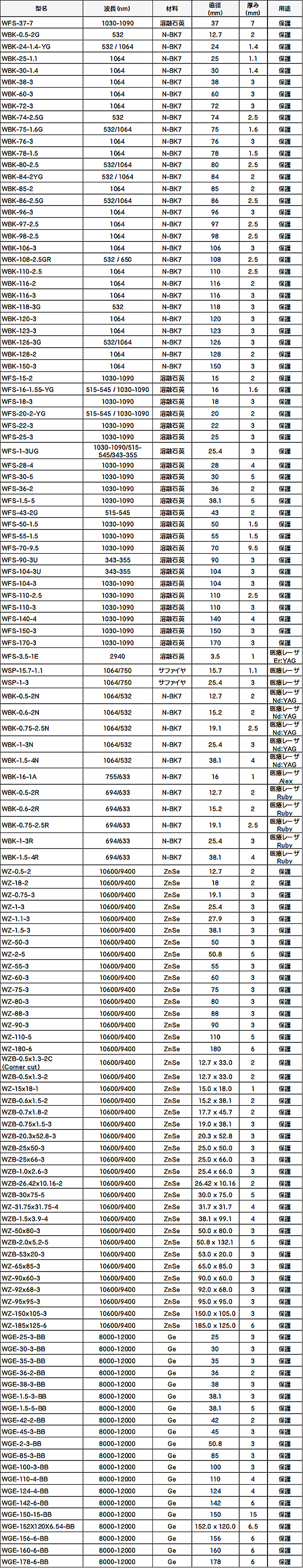 (1)IR、ガラス、医療レーザ用ウィンドウ (2) ZnSeウィンドウ (3)ZnSe薄膜偏光子>/p>