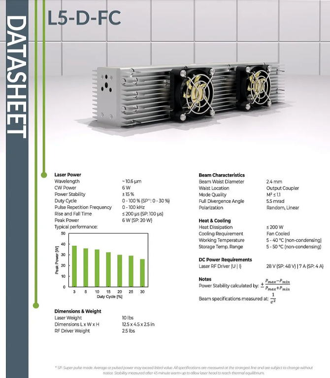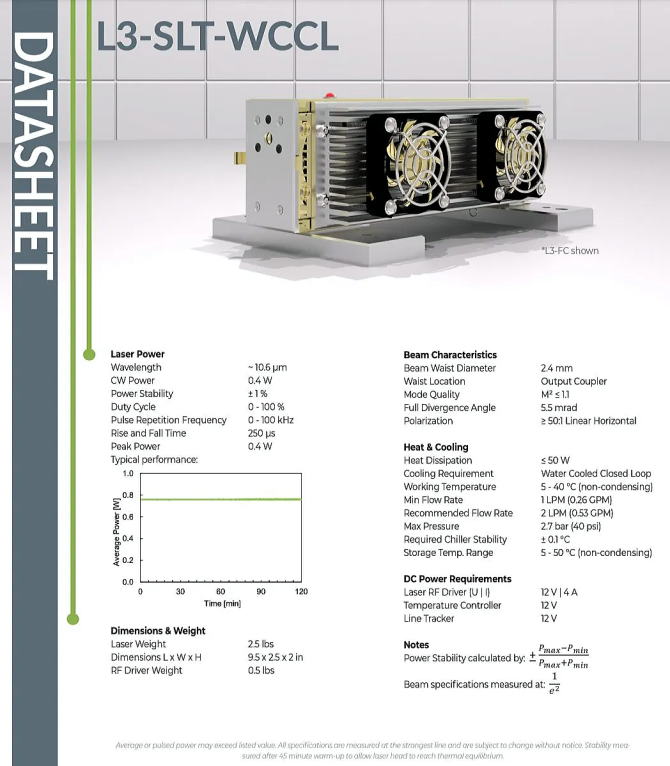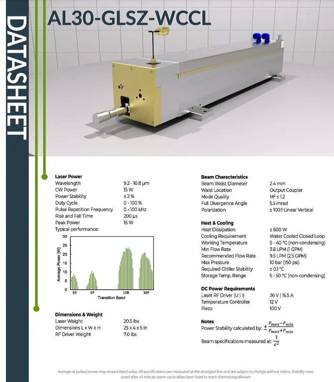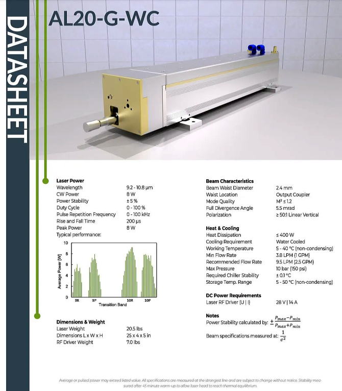 同社は、研究開発や高度な製造などのために、CO2 レーザの長波 (9.0 〜 11.4μm) および中波 (5.2 〜 5.8μm) の赤外線レーザを製造しています。