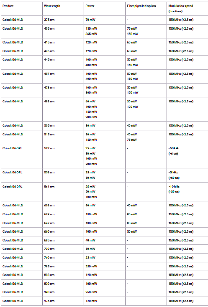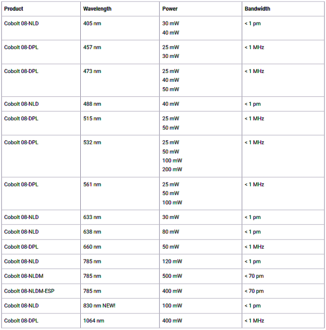 Cobolt 08-01 シリーズは、高性能単一周波数ダイオード、励起レーザー (DPL) および周波数安定化ダイオード レーザー (NLD) を含む、コンパクトな狭線幅連続波レーザーのファミリーです。 このシリーズは、ラマン分光法用の市場で最も広い波長範囲と最高性能のレーザーを提供します。
